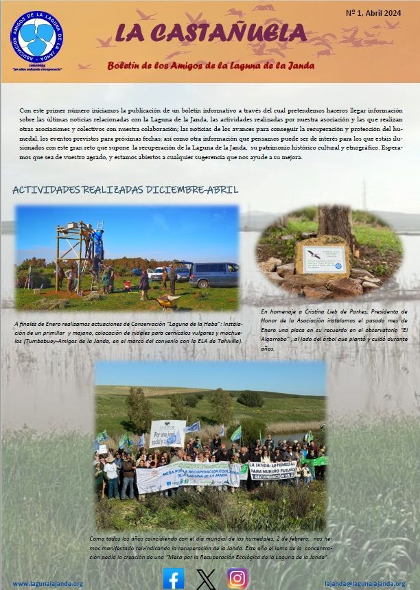 Desde su fundación la Asociación viene actuando ante las administraciones para conseguir la restauración y protección del humedal, participa en la realización de censos y estudios de aves, jornadas, charlas, talleres, exposiciones, acciones reivindicativas, instalación de cartelería informativa, colabora en publicaciones y medios de comunicación y está presente en redes sociales e internet contribuyendo de esta manera a divulgar los valores naturales y patrimoniales de la Janda y mantener vivo en la sociedad el objetivo de recuperar para todos este excepcional humedal.